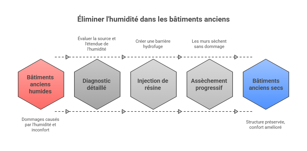 La technique révolutionnaire d'injection de résine hydrofuge de masse représente la solution optimale pour ces problématiques complexes. Cette méthode innovante consiste à créer une barrière d'étanchéité chimique horizontale dans l'épaisseur même des maçonneries, interrompant définitivement les remontées capillaires sans compromettre les propriétés mécaniques des matériaux traditionnels.